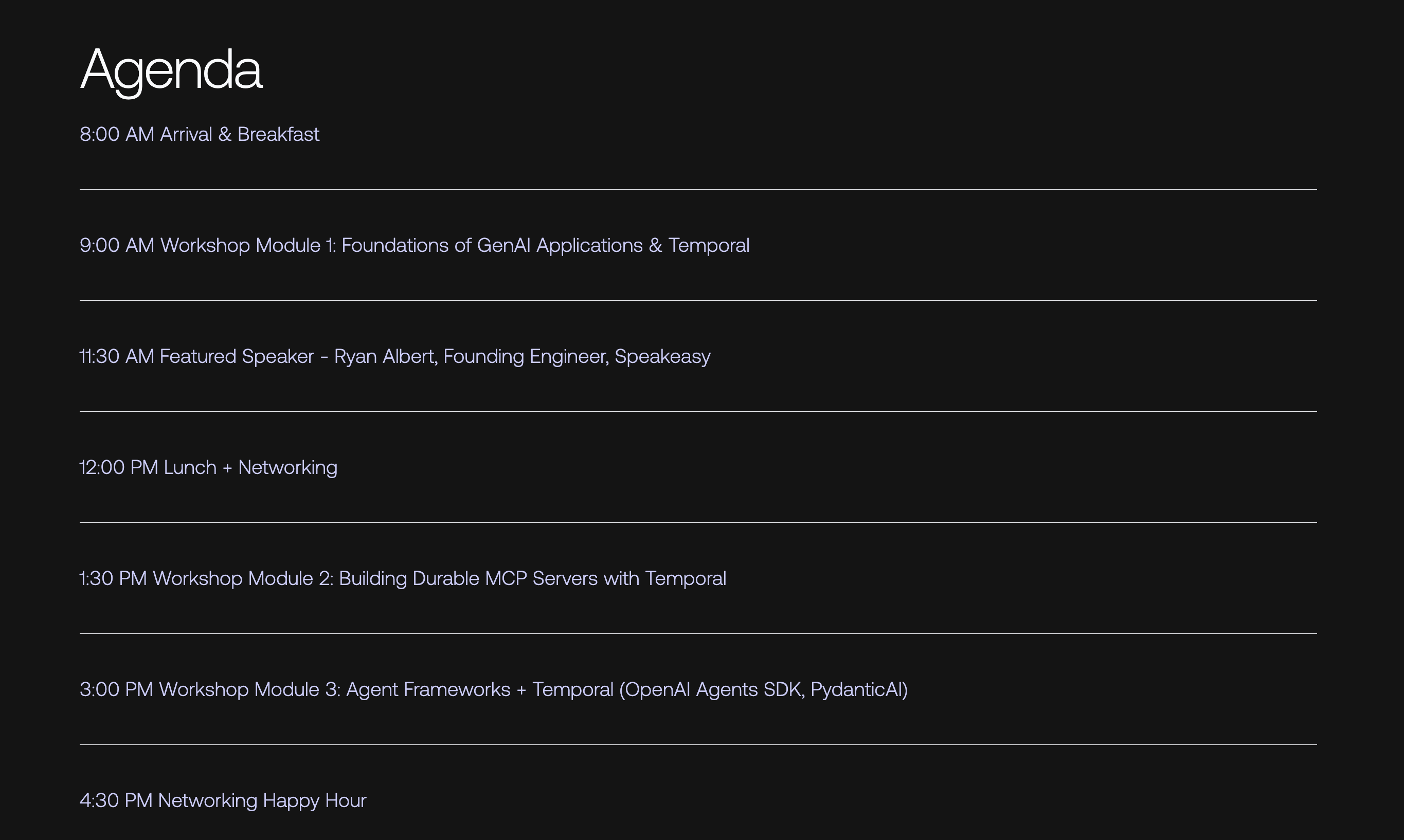 This week, I attended the Temporal Launch & Learn conference in San Francisco. The conference focused on how developers can use Temporal to build reliable, long-running GenAI applications.